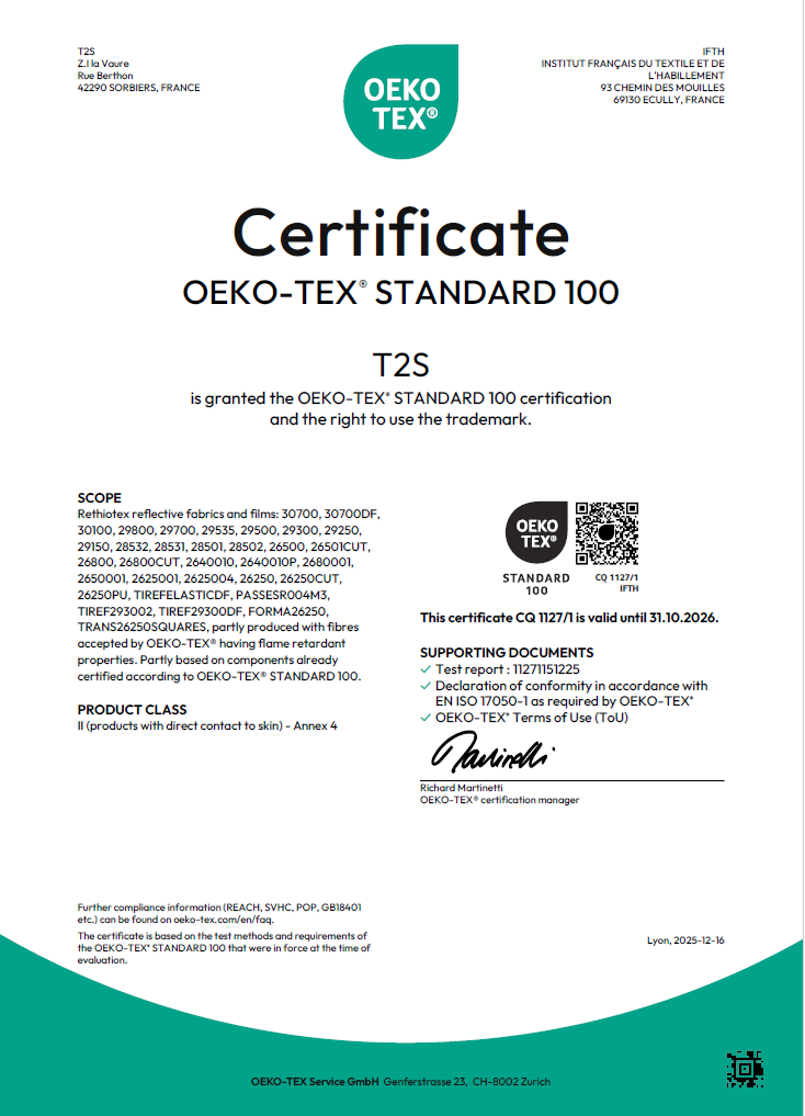 We take in charge all the certifications for our products: EN ISO 20471, Oeko-Tex®…